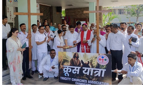 चंडीगढ़:–चंडीगढ़ शहर में गुड फ्राइडे और ईस्टर के शुभ अवसर पर ट्राईसिटी चर्चिस एसोसियेशन की ओर से रोमन कैथोलिक चर्च, चंडीगढ़ और शिमला के बिशप सहाय टी थॉमस फादर प्रेमानंद तथा एसोसियेशन के प्रेसिडेंट लॉरेंस मलिक की अध्यक्षता में क्रूस यात्रा का आयोजन किया गया।