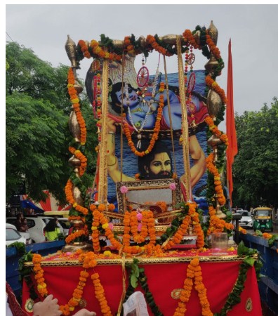 जन्माष्टमी क़े उपलक्ष मे शोभायात्रा का दशहरा ग्राउंड मे भव्य स्वागत