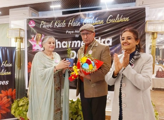 “फूल खिले हैं गुलशन गुलशन” के तहत मैडम गुलशन सोनी ने होटल सोलिटेयर मनीमाजरा, चंडीगढ़ में एक यादगार संगीतमय शाम का आयोजन किया, जिसमें भारतीय फिल्म उद्योग के महान दिवंगत अभिनेता धर्मेंद्र जी को श्रद्धांजलि दी गई। धर्मेंद्र की फिल्मो के गीत सुनाकर उन्हें याद किया। हरेक व्यक्ति ने अपनी अदा से उनके प्रति अपना प्यार व्यक्त किया। कार्यक्रम की शुरुआत मोना शर्मा और राज कुमार बातीश (के आजा तेरी याद आयी), रमेश अनेजा (पल पल दिल के पास), न्यायाधीश संजय सचदेवा (लेना होगा जनम हमें कई कई बार), किशोर शर्मा ने (मैं कहीं कवि न बन जाऊ), राम आनंद व निखत अली (प्यार का बंधन टूटे न) अन्य प्रतिभाशाली कलाकारों ने प्रस्तुति दी। पंजाबी फिल्म अभिनेत्री सत्वंत कौर ने विशेष अतिथियों न्यायाधीश संजय सचदेवा, क्विज मास्टर किशोर कुमार शर्मा, डॉ मंजीत बल और संगीत निर्देशक सुभाष कटारिया के साथ इस अवसर पर शिरकत की। पंजाबी फिल्मों की मशहूर अभिनेत्री ने कहा धर्मेंदर पंजाबी है लेकिन दुनियां के महान एक्टर है, इन लोगों को यहां गाते देख अच्छा लगा कि अपनी पारिवारिक जिम्मेदारी निभाने के बाद न केवल अपना शौंक पुरा कर रहें है बल्कि जिंदगी का भरपूर आनंद ले रहें हैँ, डिप्रेशन कभी इनके पास फटक भी नहीं सकता। वहीं ग्लोबल क्रिएशन्स के डॉ मंजीत बल ने मुक्त कंठ से बेहद ऑर्गनिज़ड प्रोग्राम की तारीफ की, एक्टर, सिंगर व क्विज मास्टर किशोर शर्मा विशेष अतिथि मतलब चीफ गेस्ट ने कहा कि इस तरह के प्रोग्राम उन्हें ऊर्जावान रखते हैँ। वो बार बार लगातार ऐसे कार्यक्रम का हिस्सा होना चाहेंगे। कार्यक्रम आर्गेनाइर स्टेज होस्ट व सिंगर गुलशन सोनी ने बताया कि लगभग 45 गीत प्रस्तुत किये गए, जिसमे तकरीबन 60 के आसपास सिंगर थे, मैडम ने सभी का तहे-दिल से शुक्रिया अदा किया। शाम को श्रोताओं ने जीवंत प्रस्तुतियों का आनंद लिया, जो धर्मेंद्र जी के भारतीय सिनेमा में योगदान को श्रद्धांजलि देने का एक शानदार तरीका था।